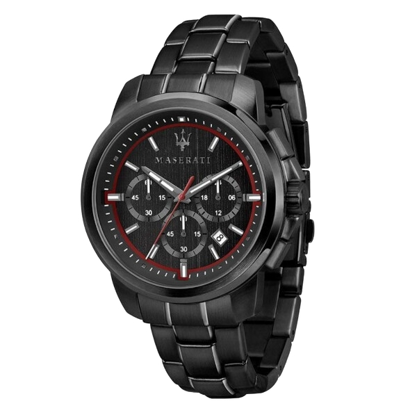 The Maserati Black Successo Chronograph is the pinnacle of luxury and sophistication. With its sleek gold design and precise timekeeping, this race watch embodies the spirit of Maserati. Designed for the discerning individual, it combines fashion and function seamlessly. Make a statement with this elegant timepiece.